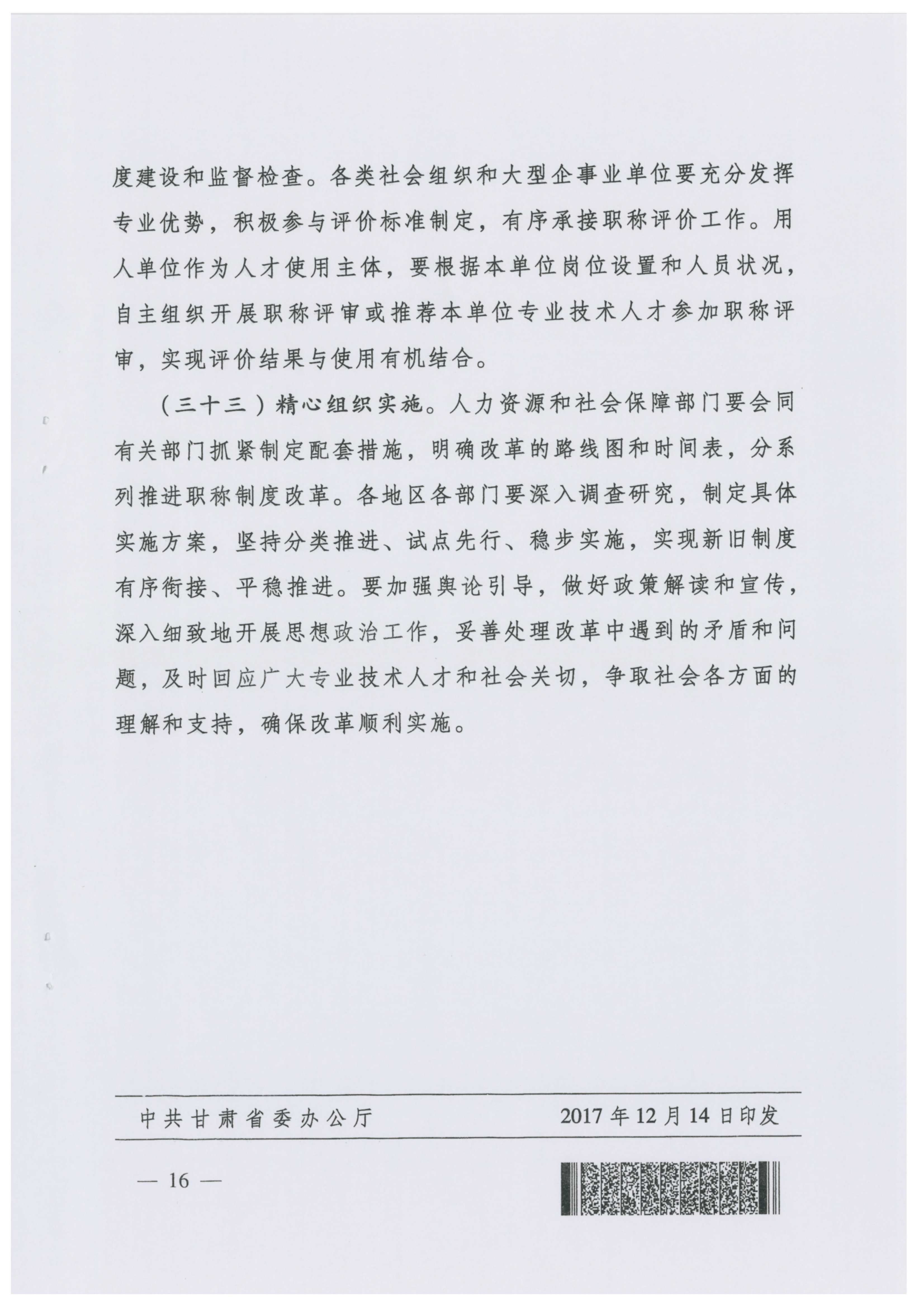 中共甘肃省委办公厅甘肃省人民政府办公厅印发《关于全面深化职称制度改革的实施意见》的通知